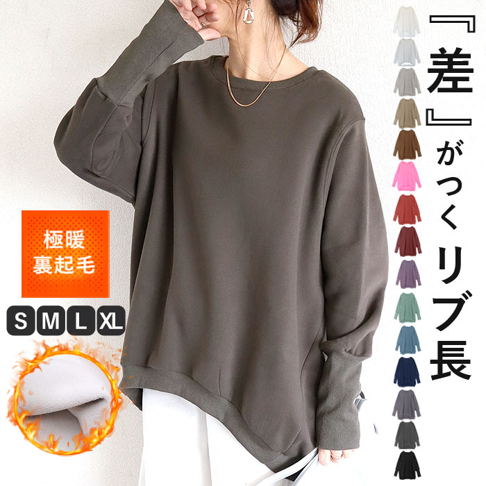トレーナー 裏起毛 レディース 裏ボア 極暖 スウェット 裏毛 大きいサイズ 韓国 リブ長 トップス 長袖 無地 ルームウェア 部屋着 送料無料 [郵3]^t1040^