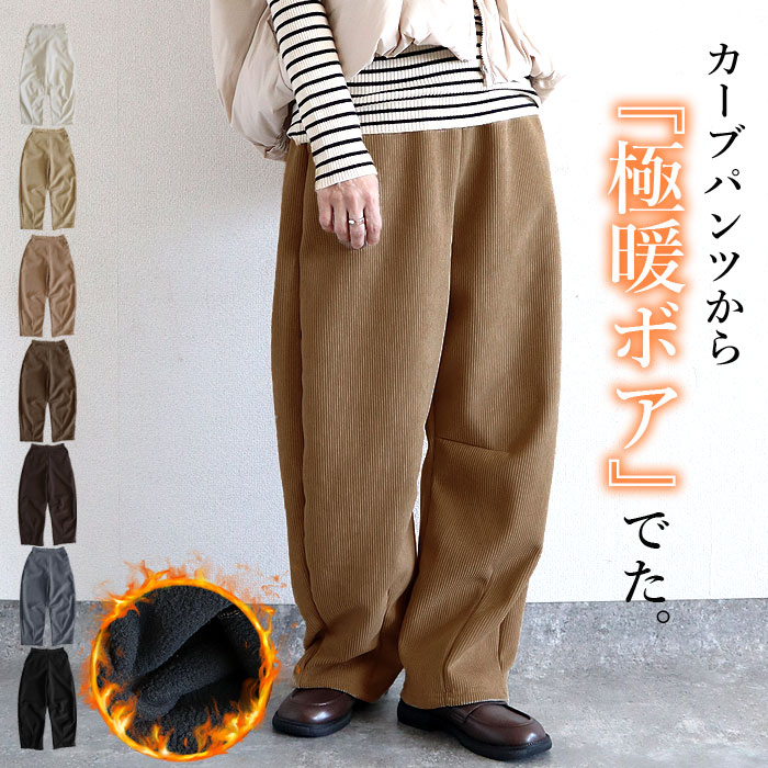 ボトムス レディース カーブパンツ 秋 冬 白 黒 おしゃれ 裏起毛 裏ボア 極暖 あったか 暖か ウエストゴム ウエスト紐付き[郵3]^b507^