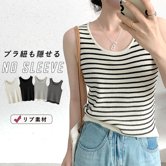 ノースリーブニットトップスリブニットボーダーインナーかわいい シンプル レディース送料無料 [郵1.5]^t1051^