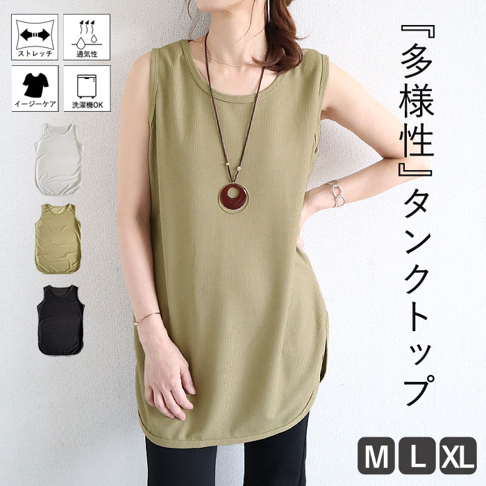 トップス レディース 春 夏 黒 白 無地 重ね着 タンクトップ インナー ノースリーブ タンク タイト 脇高 シンプル[郵1]^t1092^
