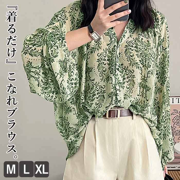 ブラウス レディース シャツ シアー 透け感 柄シャツ 春ブラウス カットソー トップス 韓国 春(送料無料)[郵2]^t1043^