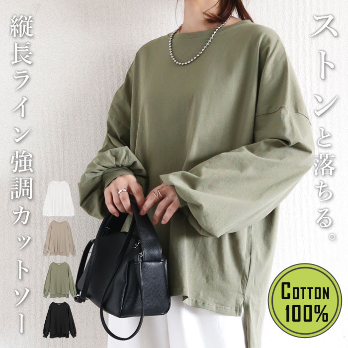 ロンt レディース 綿100% 無地 カットソー 長袖 ボートネック 大きいサイズ スリット ビッグtシャツ Tシャツ素材 春カラー オーバーサイズ ビッグシルエット ^t632^ [郵2]