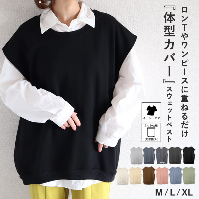 ベスト トップス レディース トレーナー スウェット ジレ 春 夏 秋 冬 黒 おしゃれ かわいい プルオーバー レイヤード 無地 [郵3]^t015^