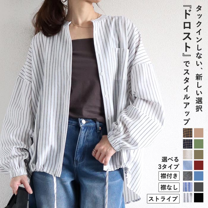 シャツ ブラウス トップス レディース 秋 冬 黒 白 おしゃれ かわいい 30代 40代 50代 長袖 ノーカラー 綿100% コットン [郵2]^t1089^