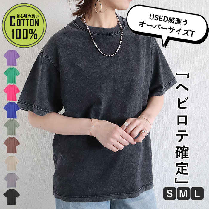 Tシャツ レディース カットソー 半袖 トップス 古着風 ロゴ プリント ヴィンテージ風 オーバーサイズ ゆったり 黒 カジュアル 春 夏 サマー セール SALE(送料無料)[郵2]^t1056^