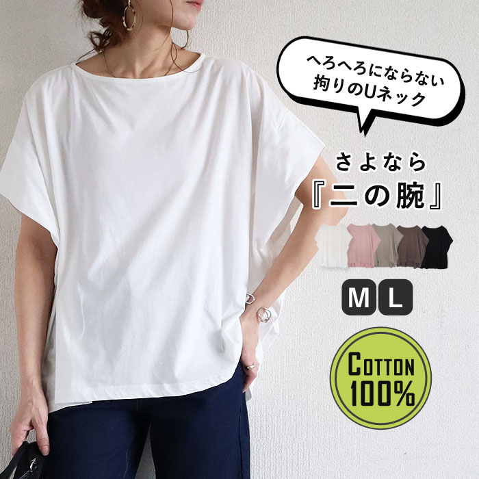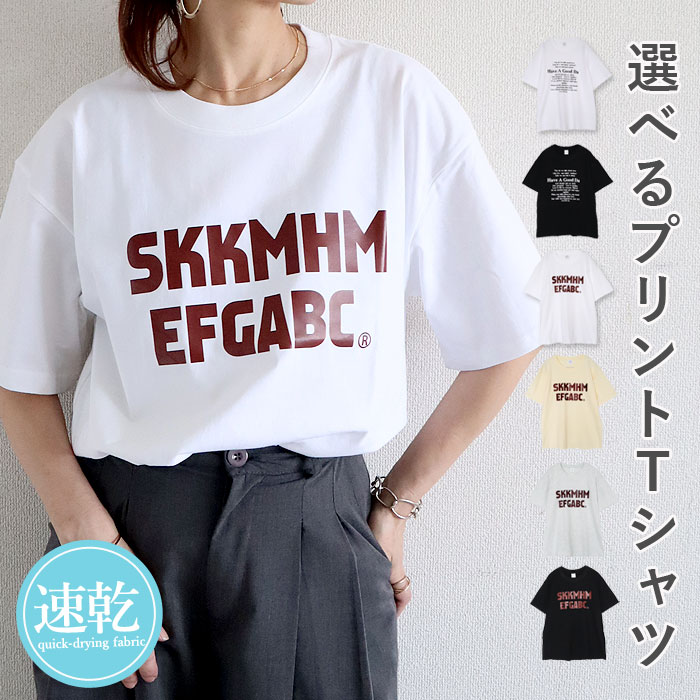 トップス レディース Tシャツ 春 夏 白 黒 おしゃれ 半袖 ロゴ カジュアル 二の腕隠し 体型カバー 選べる2タイプ[郵1.5]^t1114^
