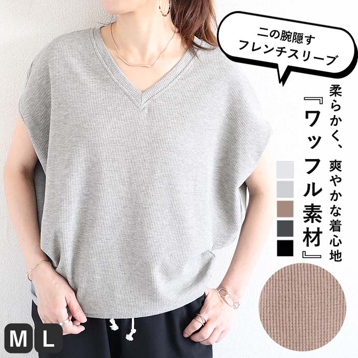 カットソー レディース Tシャツ フレンチスリーブ 半袖 ワッフル ベスト 無地 おしゃれ 大きいサイズ ゆったり トップス 綿混 春 夏 白 黒 カジュアル シンプル TEE [郵2]^t1099^