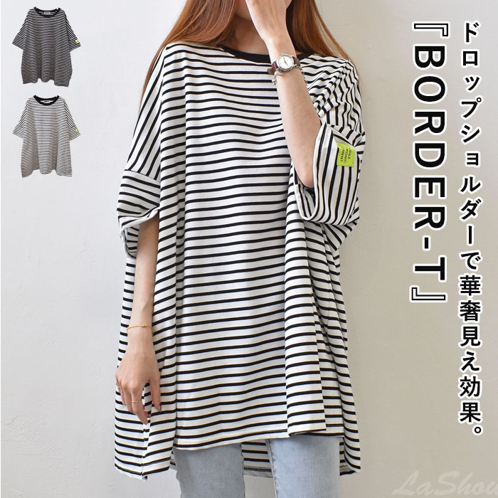 Tシャツ レディース カットソー 半袖 カジュアル おしゃれ 大きいサイズ ボーダー トップス 春 夏 白 黒 カジュアル シンプル レイヤード 重ね着 TEE[郵2]^t1101^