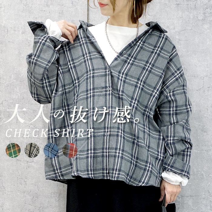 シャツ レディース チェックシャツ チェック柄 パフスリーブ レディース 長袖 おしゃれ トップス 長袖 オーバーサイズ 韓国 大きいサイズ チェック [郵3]^v126n^