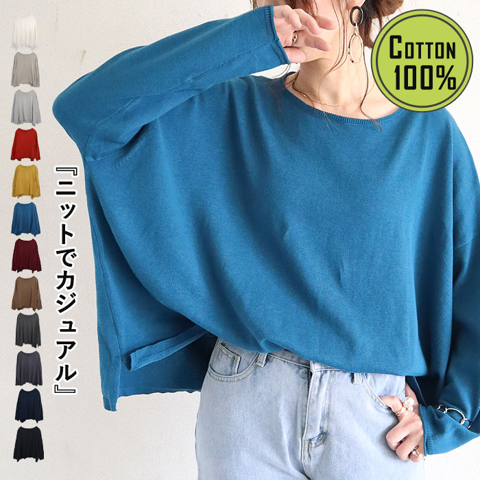 ニット レディース 薄手 ニットソー カットソー 大きいサイズ 無地 薄手ニット 重ね着 トップス 長袖 ロゴ おしゃれ 体型カバー [郵2]^t1065^