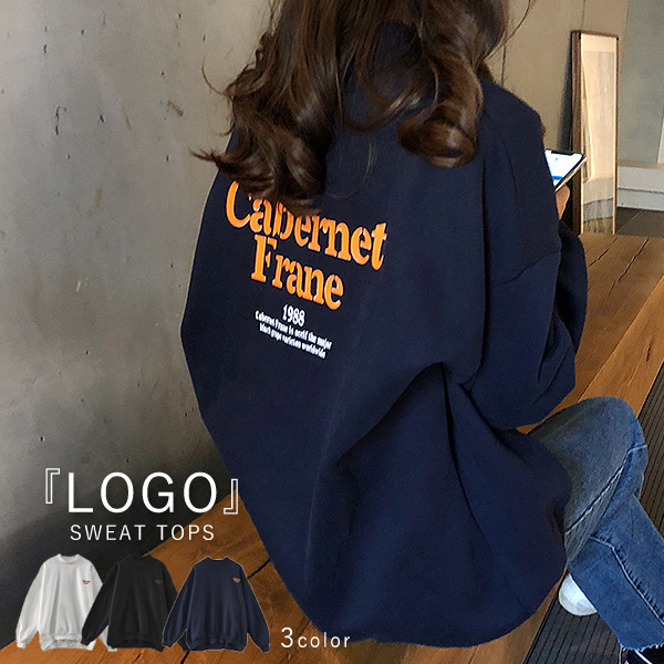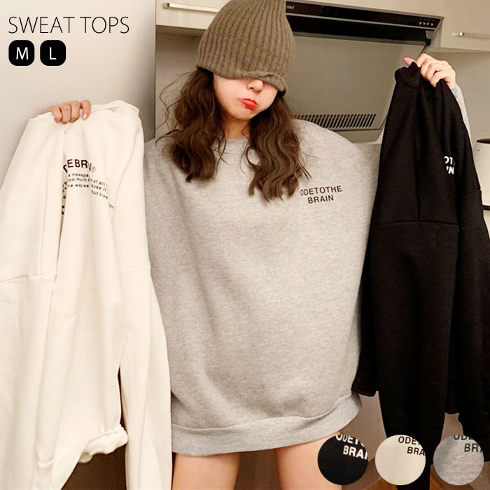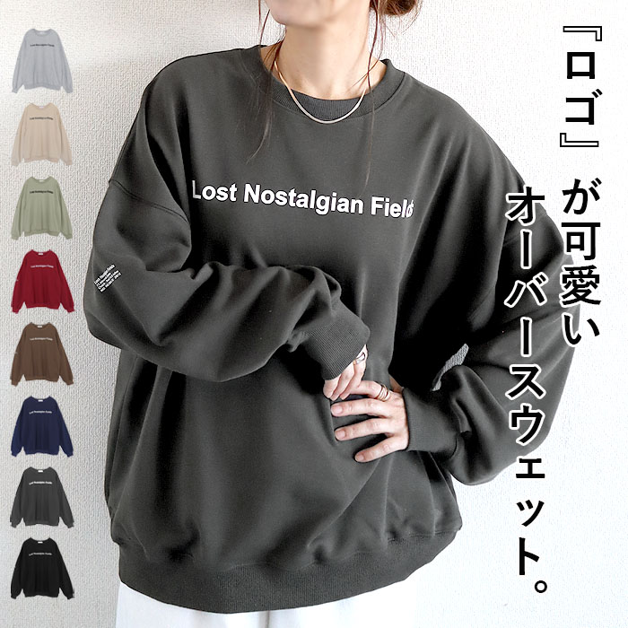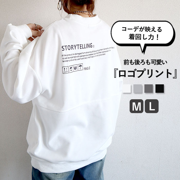 スウェット トレーナー レディース トップス 長袖 秋 冬 黒 白 おしゃれ かわいい 30代 40代 50代 ロゴ プリント ゆったり 大きいサイズ [郵3]^t520^