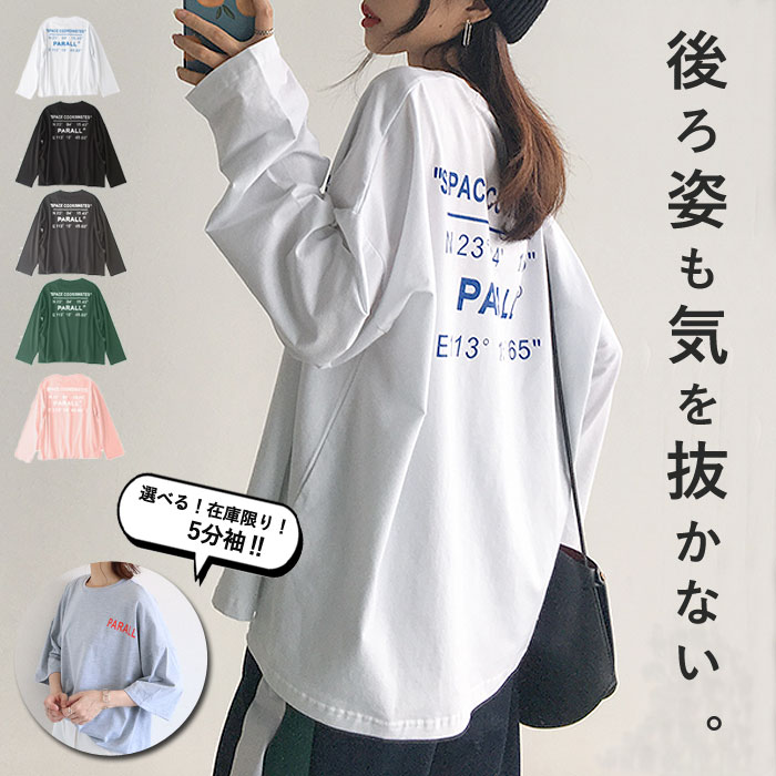 カットソー レディース 半袖 tシャツ レディース 5分袖 ロンT 長袖 トップス バックプリント ロゴT ビッグシルエット オーバーサイズ おしゃれ ゆったり 大きいサイズ[郵2]^t580^