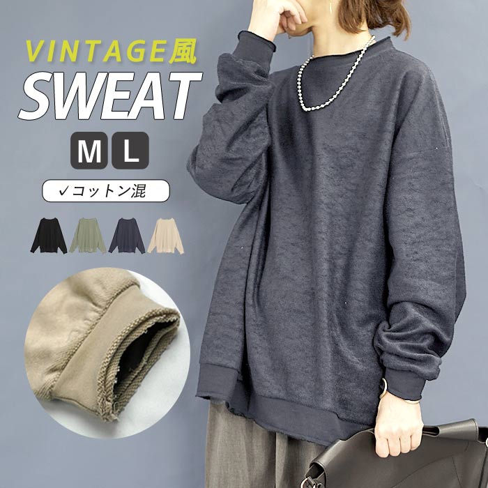 スウェット プルオーバー カットソー 長袖 ゆったり おしゃれ レディース カジュアル トップス ルームウェア 部屋着 オーバーサイズ ビッグシルエット ^t776^ [郵3]