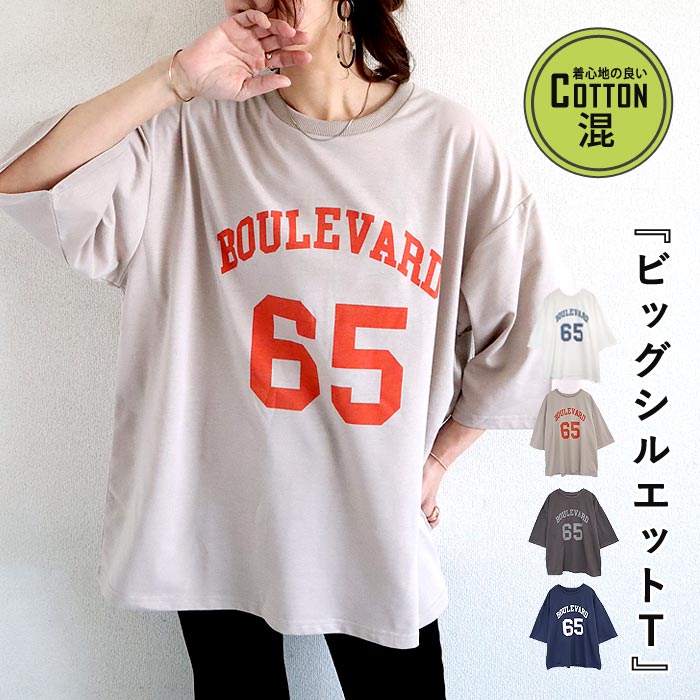 カットソー 半袖 春夏 コットン100% ロゴ 体型カバー ゆったり 丸首 レディース トップス ^t845^ [郵2]