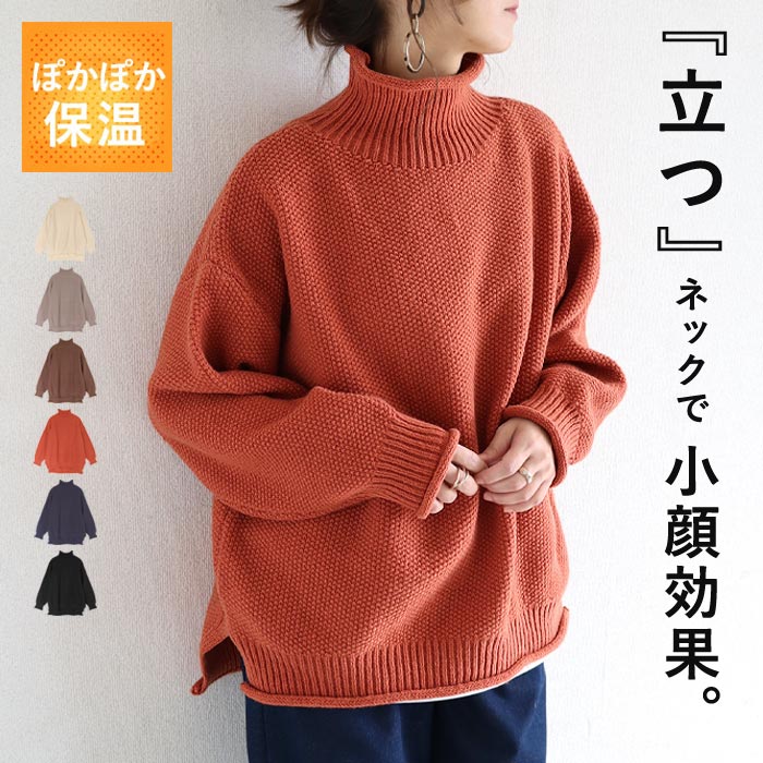 ニット レディース タートルネック セーター ざっくり ハイネック ハイゲージ 鹿のこ ゆったり 厚手 体型カバー トップス 秋 冬(送料無料)^t1066+t630^