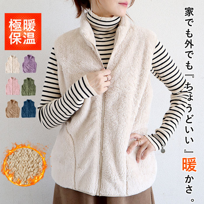 アウター トップス レディース ベスト 秋 冬 白 おしゃれ ノースリーブ 無地 極暖 暖か ボア ボタン ジップアップ 動きやすい[郵3]^jk218^