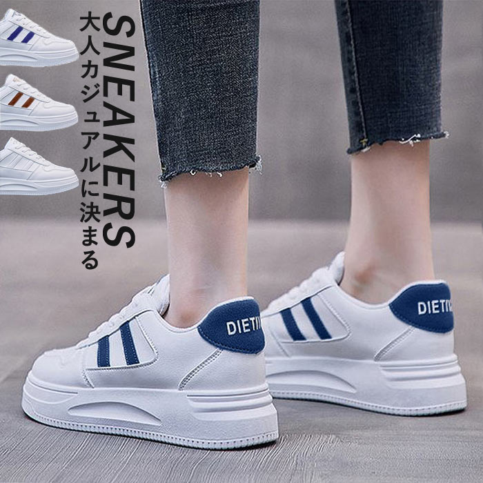 スニーカー レディース 厚底 ライン ローカット カジュアル シンプル レースアップ 春 (送料無料)^bo-903^