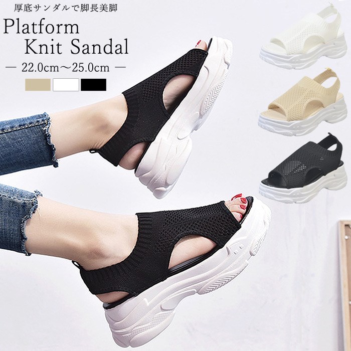 サンダル 厚底 レディース スポーツサンダル コンフォートサンダル 夏 黒 白 ニット メッシュ オープントゥ シューズ 靴 歩きやすい 疲れにくい 快適 通気性 (送料無料)^bo-888^