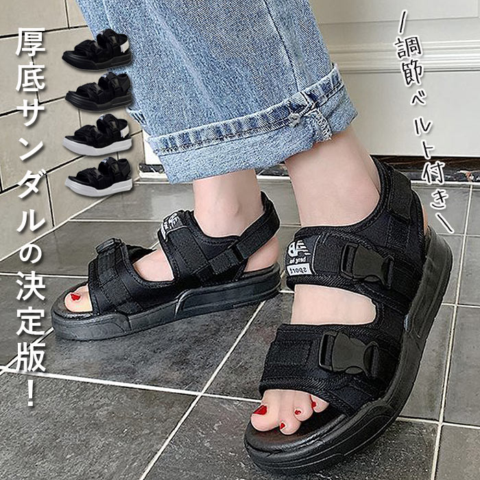 サンダル レディース 厚底 スリッパ 夏 ベルト ベルクロ スポーツサンダル スポサン 黒 キッズ メンズ 親子コーデ ペアルック ユニセックス (送料無料)^bo-591^