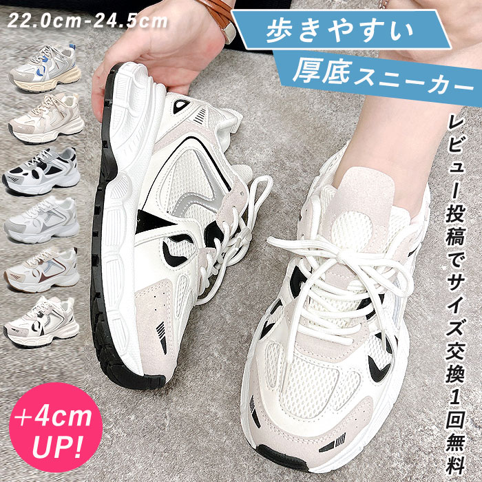 レディース シューズ 厚底 スニーカー ダッドシューズ 靴 白 ローカット レースアップ 美脚 脚長 ウォーキング ジム ランニング 運動靴 かわいい おしゃれ 送料無料 ^bo-755^
