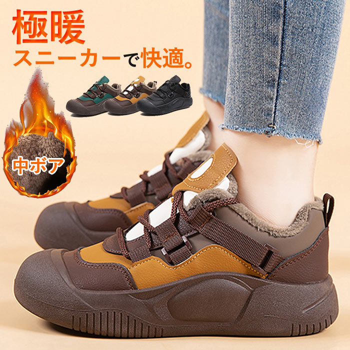 スニーカー レディース シューズ 靴 カジュアル ローカット 中ボア あったか 暖かい 極暖 厚底 おしゃれ 秋冬(送料無料)^bo-952^