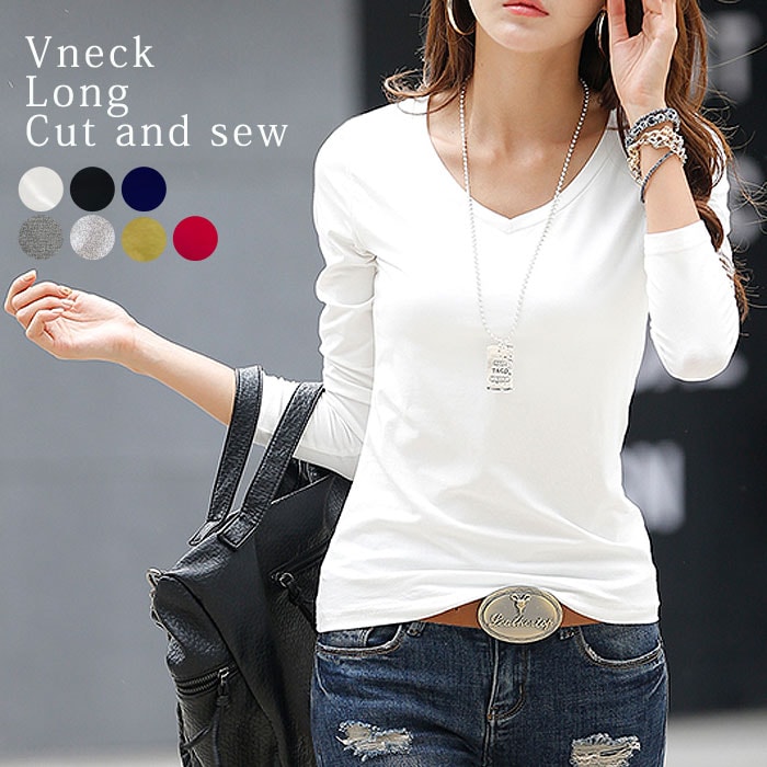 トップス カットソー ロンt レディース vネック tシャツ 長袖 秋冬 無地 シンプル 重ね着 レイヤード ^t291^ [郵2]についてつぶやく