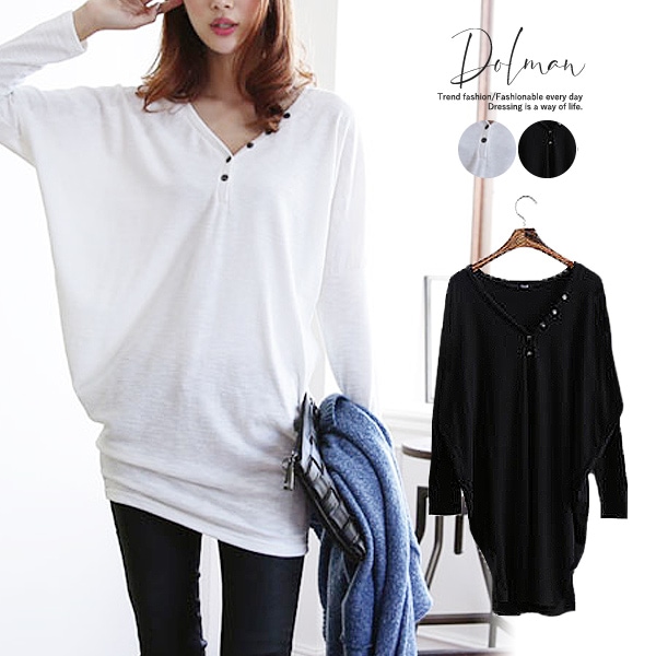Vネック ロンt チュニック 長袖 カットソー ドルマンスリーブ ゆる トップス レディース Tシャツ素材 オーバーサイズ ビッグシルエット^t054^ [郵2]