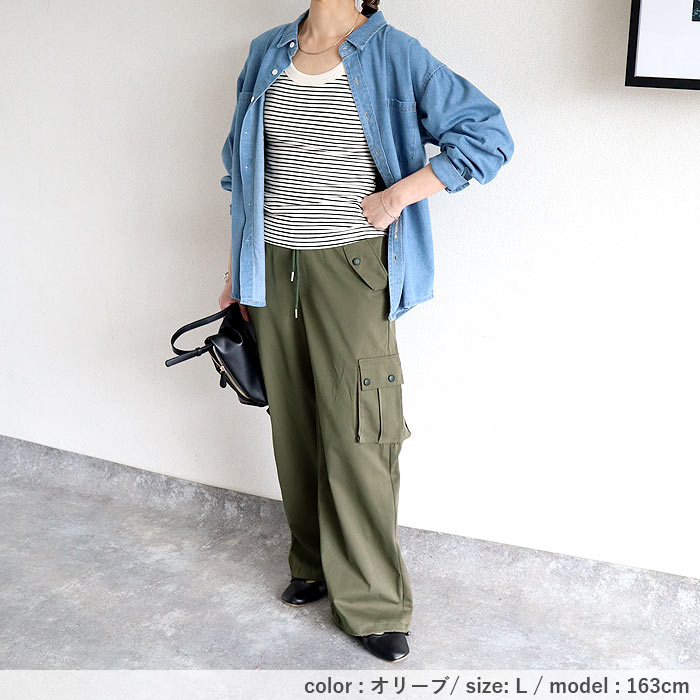 パンツ カーゴパンツ レディース ワイドパンツ ドロスト ドローコード ウエストゴム きれいめ カジュアル(送料無料)[郵3]^b445^